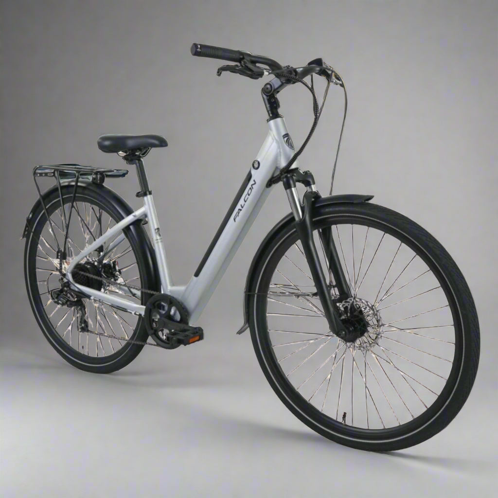 The Falcon Horizon Low-Step Electric Hybrid Bike offers exceptional value for an electric bike designed to make commuting and weekend adventures easy and comfortable. Perfect for short city rides, canal towpaths, and leisurely trips to the countryside, this bike provides a smooth and enjoyable ride. Its low-step frame ensures easy mounting and dismounting, making it ideal for riders ranging from 5’0” to 5’10” (152cm to 178cm).