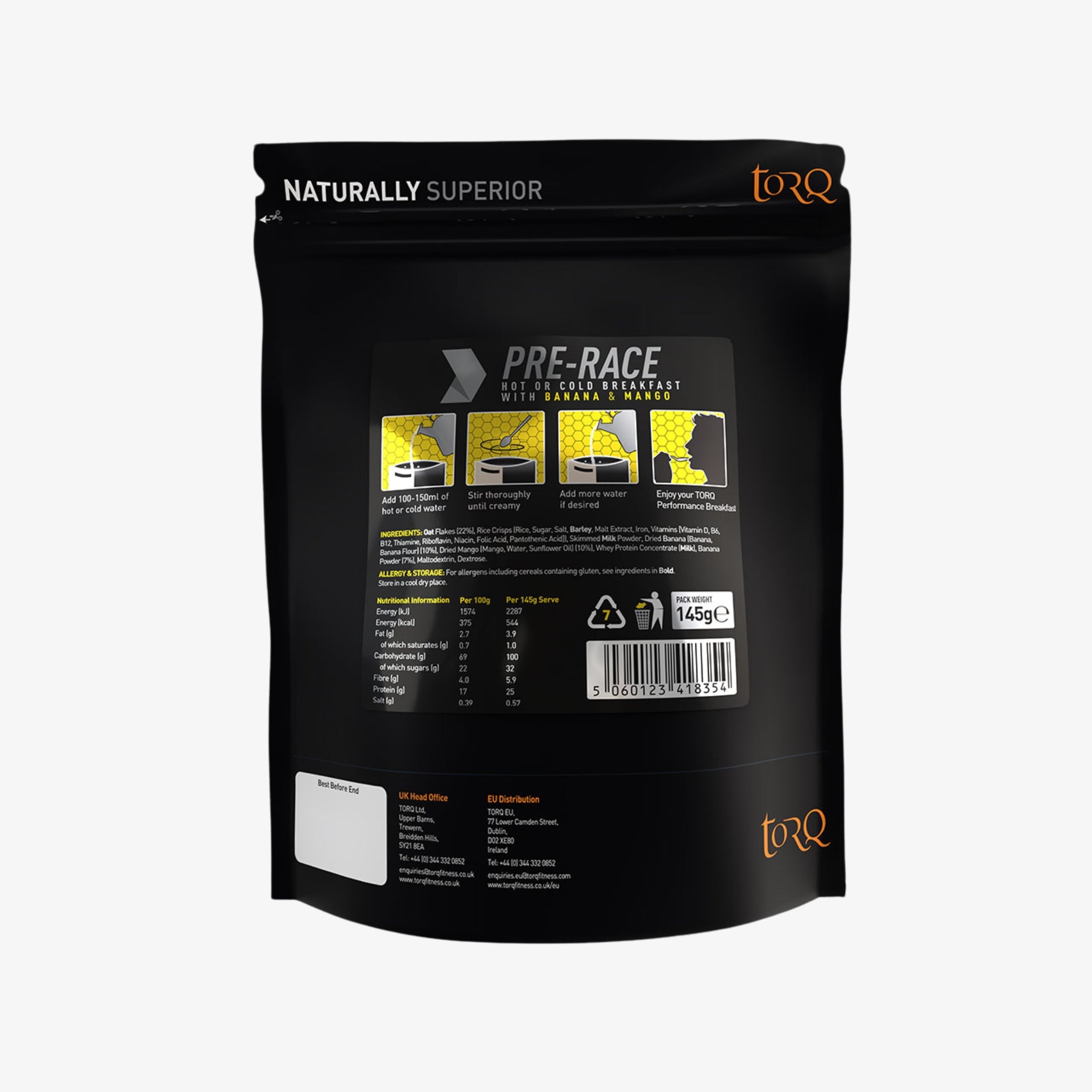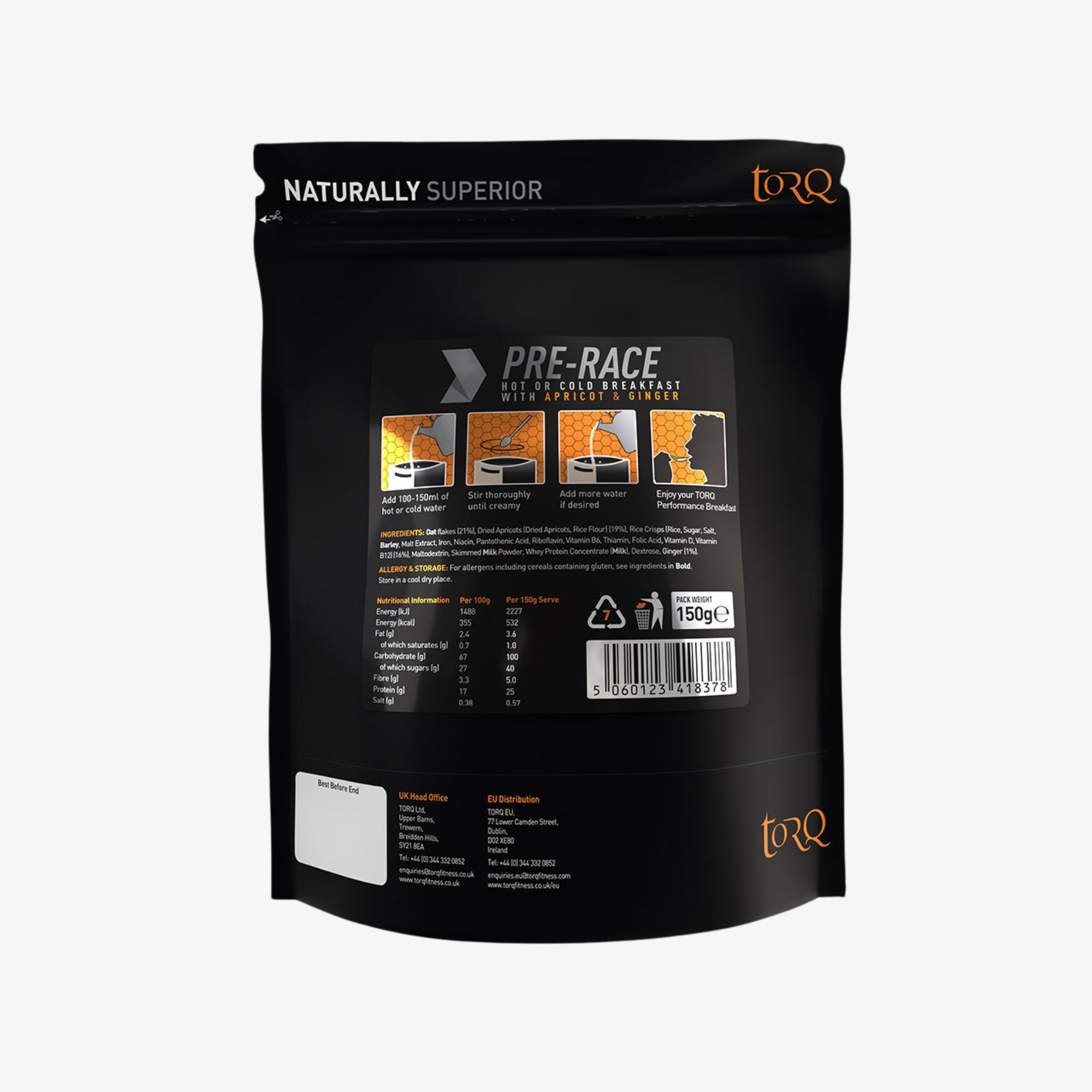 Packaged for convenience and portability, TORQ Pre-Race Breakfast is ideal not only before races but also during ultra-distance events as a substantial energy feed. Developed from raw dried ingredients to preserve nutrients and flavour, it fits seamlessly into the wider TORQ Fuelling System, helping athletes train, race, and recover with confidence—whether you’re lining up for a marathon, triathlon, sportive, or ultra-endurance challenge.