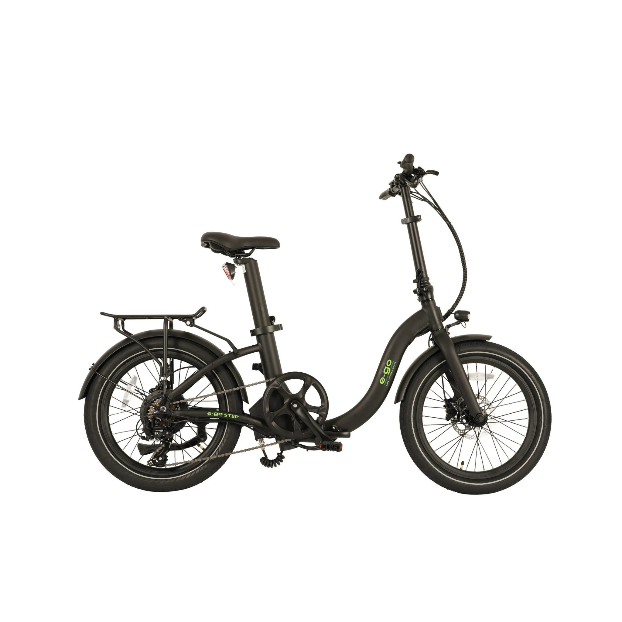Powered by a 250W 36V motor and a high-quality 614Ah/504Wh branded LG battery, the E-Go Step delivers smooth and consistent pedal assistance across five levels, plus a walk mode and standard bike mode. It’s equipped with 20" wheels and wide 2.35" tyres for enhanced grip and comfort on varying terrain. The addition of hydraulic brakes ensures powerful stopping performance, and the bike supports a maximum payload of 120 kg.