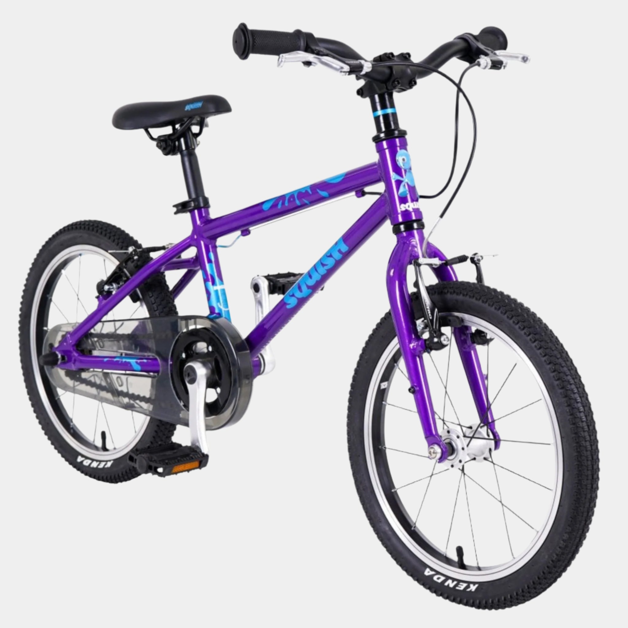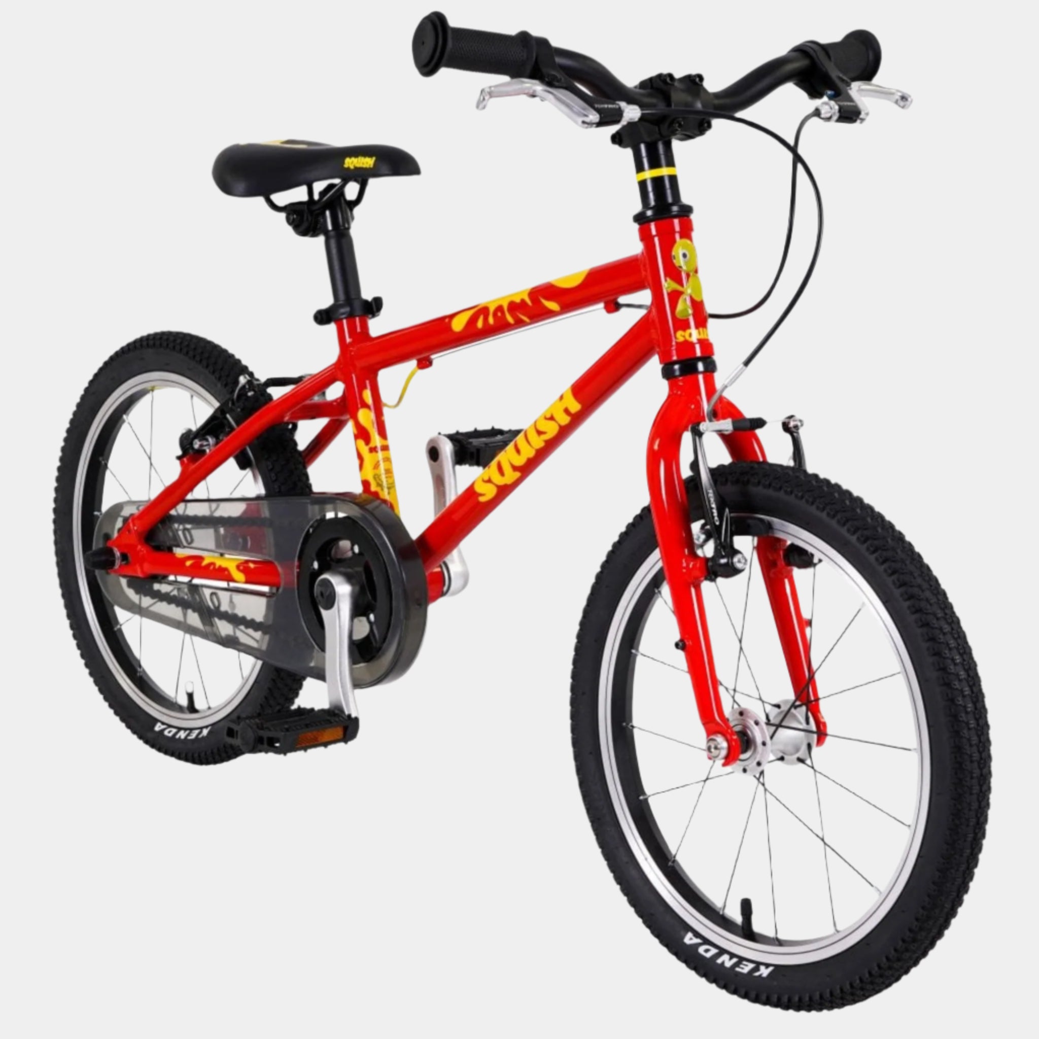 Every detail has been thoughtfully crafted to suit smaller riders, from the shortened 102mm cranks to the junior-specific stem, grips, and pedals. The lightweight triple-butted aluminium frame ensures the bike is easy to control, while the grippy tyres and well-balanced design provide stability and support as they ride. Whether cruising around the park or riding to school, the Squish 16 makes every journey a joy.