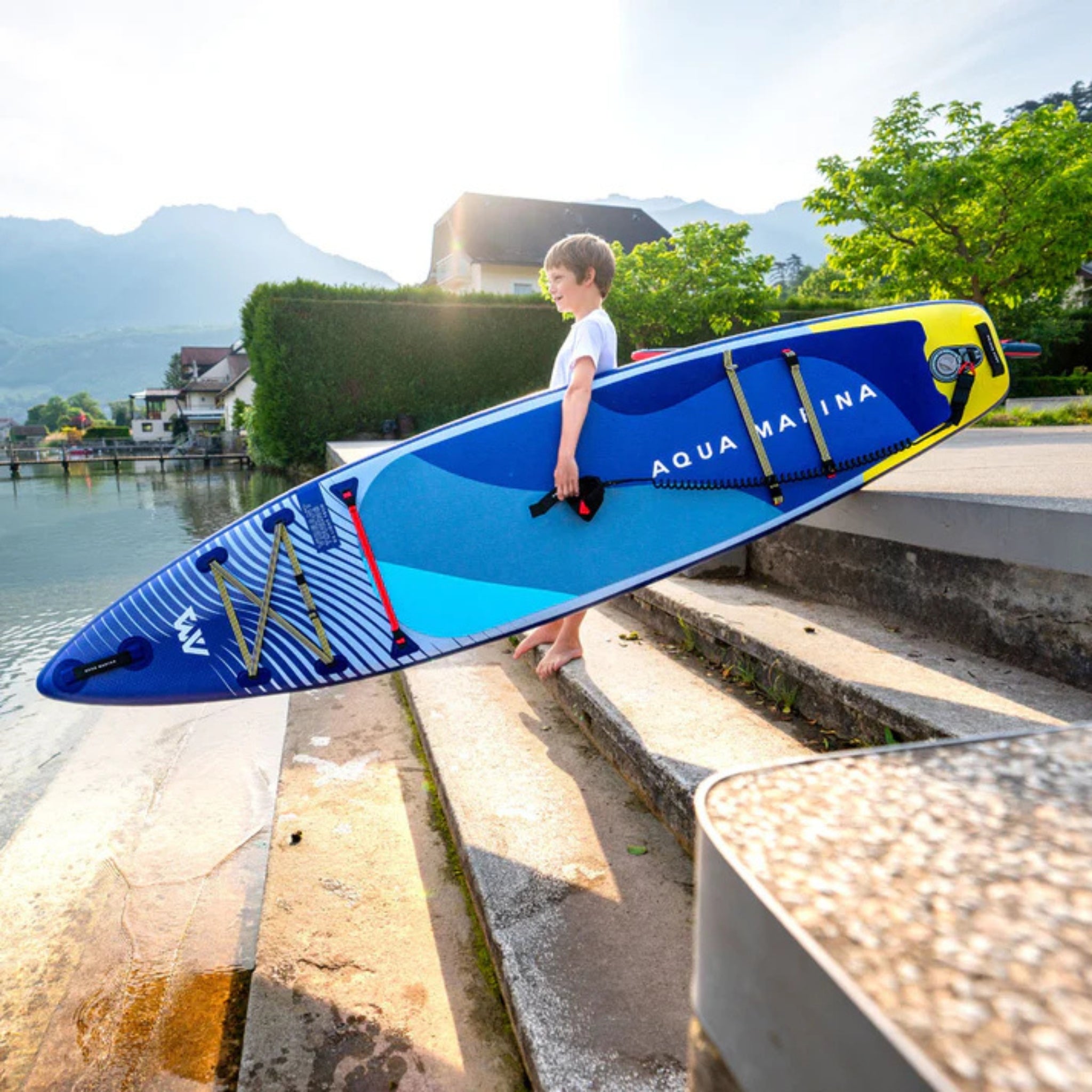 Aqua Marina prioritises safety, performance, and convenience, equipping this board with the Iconic Red Strap bungee system for secure storage on deck. The double-action pump allows for quick and easy inflation, so young paddlers can spend more time on the water and less time setting up. Whether they're training or simply joining family adventures, the Vibrant Touring SUP provides the perfect mix of fun, performance, and adventure.
