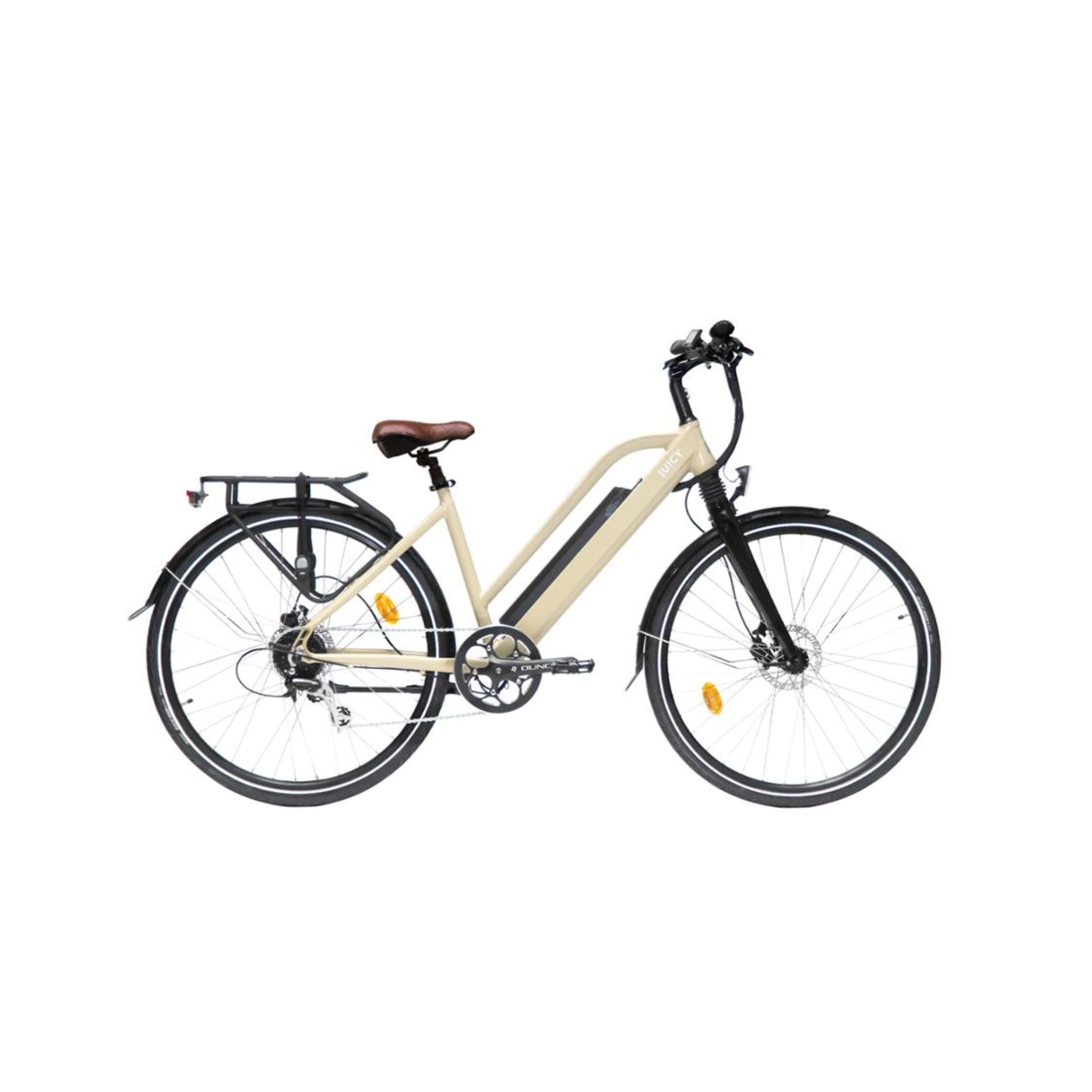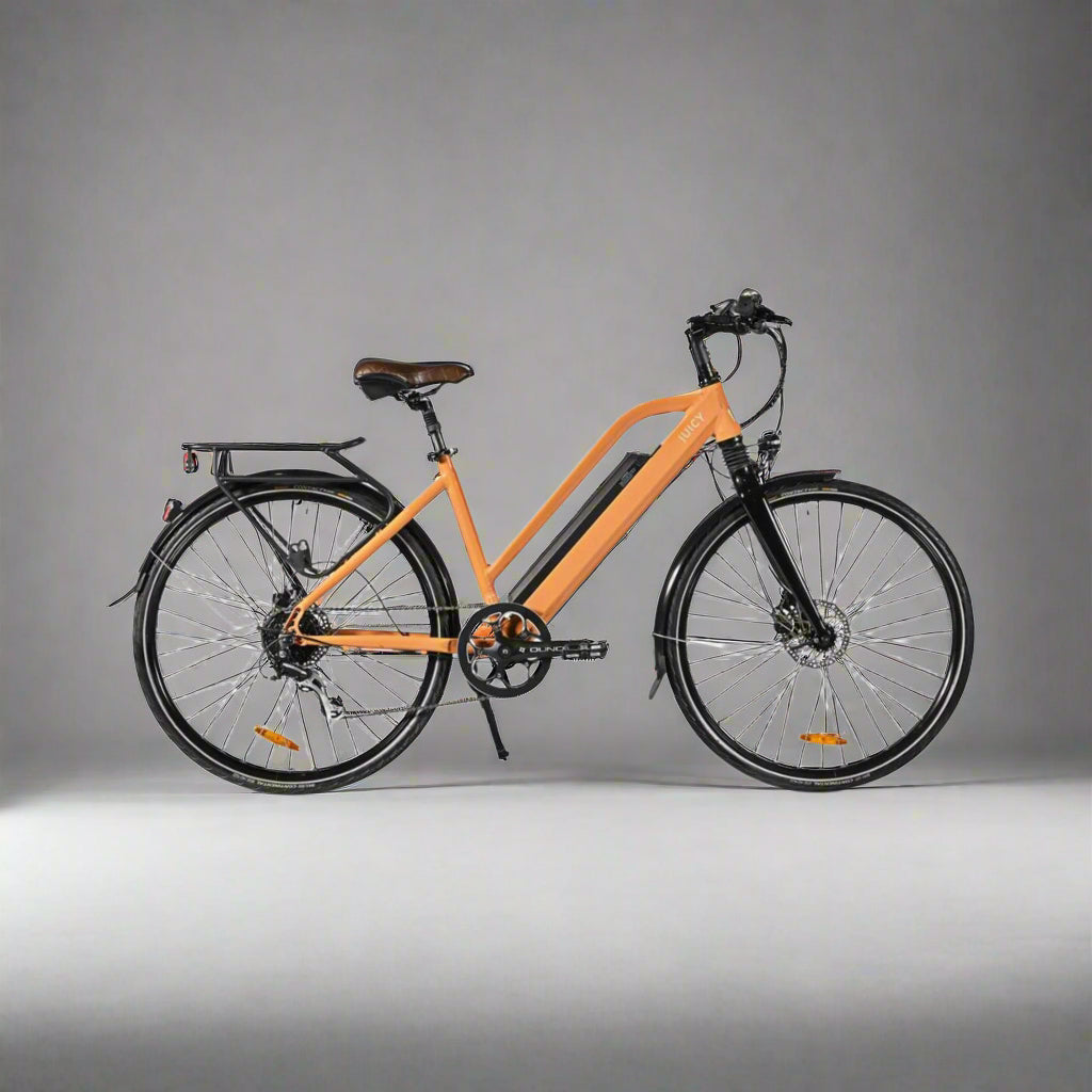Take on any adventure with the Juicy Bike Roller Electric Bike, a high-torque electric bike designed for long, leisurely rides and effortless hill climbing. Whether you’re commuting through the city or exploring the countryside, the Roller provides a comfortable riding position, refined power delivery, and an upgraded battery as standard. Equipped with an ultra-quiet Aikema motor—lighter, smaller, and more powerful than any other hub motor in the Juicy range—this e-bike offers a smooth yet powerful ride. And with all-weather hydraulic disc brakes, you’ll have the confidence and control to tackle any descent with ease.