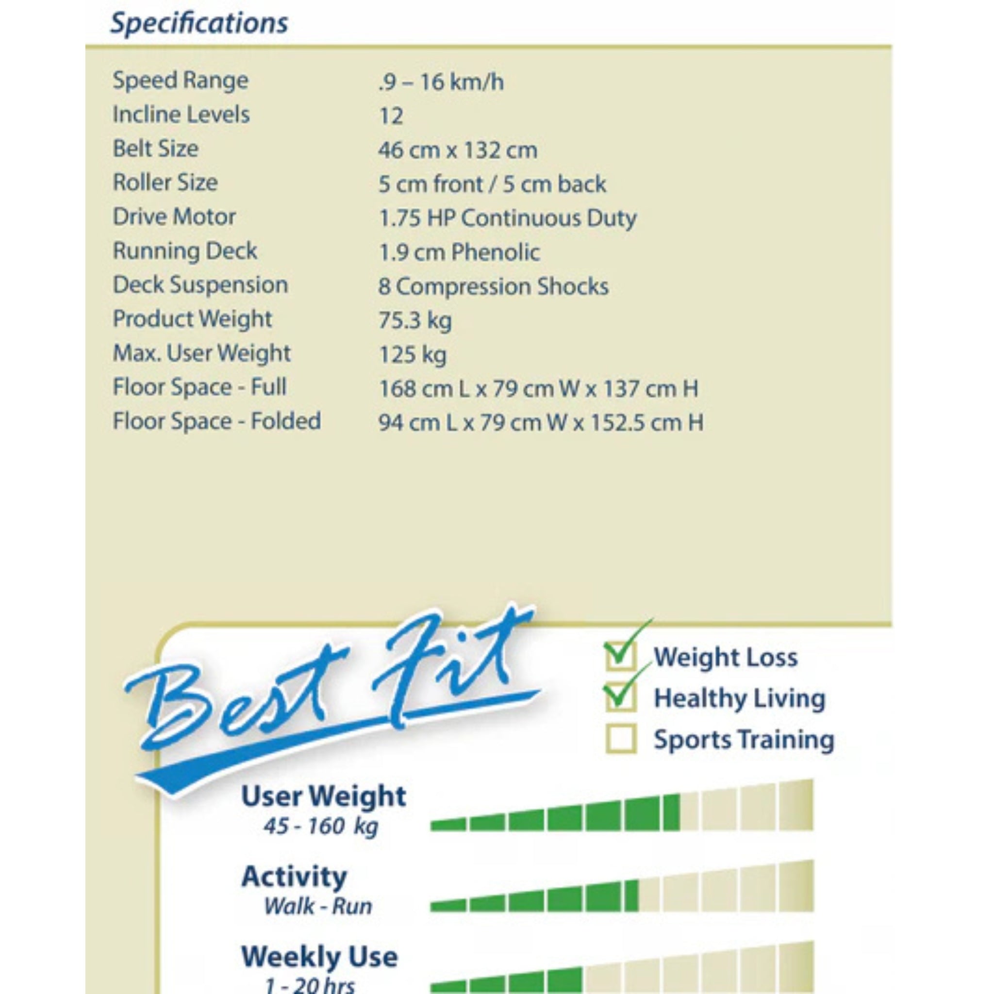 - Powerful Motor: 2.0 HP motor provides speeds up to 16 km/h for walking and light running.